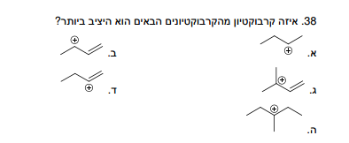 תודה רבה רבה לך ! בשאלה 25 הבנתי ש 1 ,3 יראו פעליות אופטית 2 ו4 לא יראו פעילות אופטית כי אחת היא מזו והשנייה אין לה מרכז כיראלי .. עכשיו לא הבנתי למה 5 לא מראה פעליות אופטית למרות שלמיטב ידיעתי זאת לא meso כי אין לה מישור שיקוף אז מה יכולה להיות הסיבה לכך שהיא לא מראה פעליות אופטית .. ובשישית לא הבנתי למה היא מראה פעילות אופטית .. בשאלה 30 לא הבנתי למה התשובה היא ד' ? יכול להיות שבגלל מספר המקומות לתלישת המימינים שלמשל בד' יש לי 4 אפשרויות אבל בב' יש רק שתי מקומות ובג' יש רק מקום אחד?. . למרות שאם חושבים על הזה הרדיקל השלישיוני יותר יציב משניוני וראשוני ולכן התשובה צריכה להיות ב' .... תודה רבה