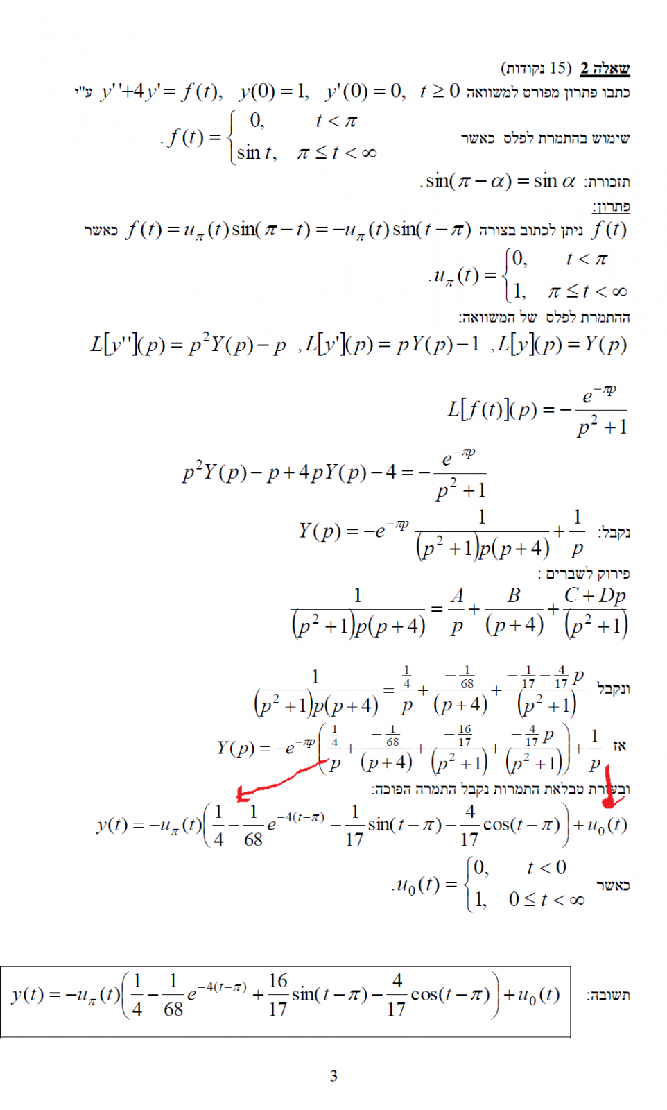 תודה סימנתי באדום את ההתמרה ההפוכה של לפלס למה בשני המקרים ההתמרה ההפוכה שונה למרות שהיא אותה התמרה ? זאת אומרת למה 1/P ההתמרה ההפוכה שלה פעם היא u0 ופעם היא 1/4 אני יודעת שזה תלוי ב t אבל ה t>0 מה שאומר שu0צריך להיות 1 בשני המקרים לא? תודה