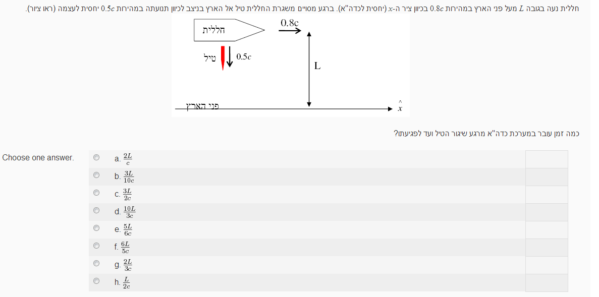 אז אתה אומר לי בעצם שאני צריכה לכפול את הזמן בגמא ואז לכפול אותו במהירות שיצאה לי על מנת לקבל את המרחק'? ושאלה קטנה מתי בעצם אני כופלת בגמא ומתי אני מחלקת בגמא ? זה מאוד מבלבל אותי :(