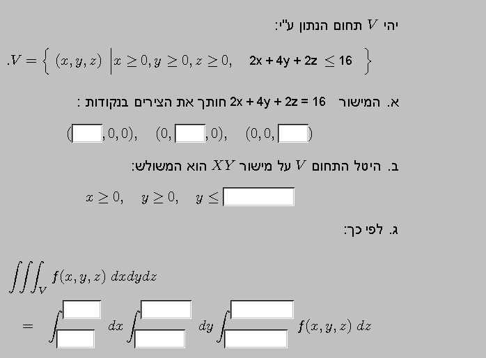 תודה רבה! יצא לי בשאלה הזאת 80% אמרו לי שהאינטגרל בסוף לא נכון .. מה שאני עשיתי זה שהאינטגרנד שלי הוא 1 חלקי 11 וגבולות האינטגרציה הם : הצבתי 0 ל U ו 0 לV וקיבלתי את W וככה עשיתי לכול אחד וקיבלתי שגבולות האינטגרציה הם U מ 4 ל מינוס 4 ו V הוא 4 למינוס 4 ו W הוא ממינוס 1 ל אחד ..
