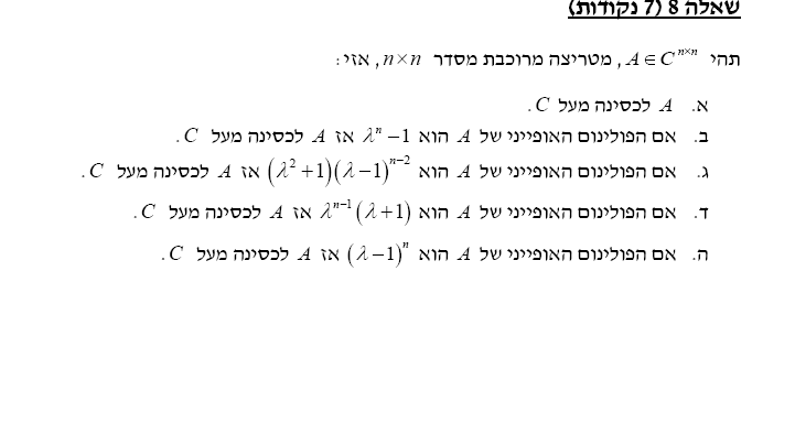 אבל אם כל הע"ע הם 1, ולדוגמא ניקח את מטריצת היחידה אז כשנציב בה את הע"ע 1 נקבל את מטריצת האפס. ולמטריצת האפס הריבוי הגיאומטרי הוא של המרחב כולו אם אני לא טועה ?! אין כאן סתירה?