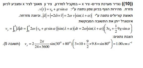 בשאלה הזאת, אני לא מצליח לראות איך בחישוב של תאוצת קוריוליס יצא להם שהזווית בין המהירות המשיקית והמהירות הזוויתית היא alpha + gama. זה בחישוב שלהם ואני שובר את הראש ולא מצליח להבין מניין הם הגיעו לזווית הזאת. אודה מאוד אם מישהו יוכל להסביר לי את זה. צירפתי את השאלה והפתרון