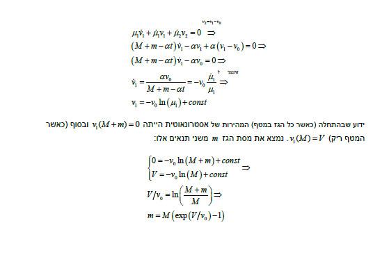 שלום לכולם השאלה הבאה היא ממבחן והפתרון שלו. אני מנסה להשתכנע מאופן הפתרון: הגדירו את המסה של הגז שנפלט כגוף אחד - מצד אחד, מאחר שמהירותו מרגע שנפלט אינה משתנה גוזרים אותו כקבוע, ומצד שני המהירות אינה אחידה לכל הגז. כלומר, לא לכל חלקיקי הגז יש את אותה המהירות אלא לכל חלקיק גז שנפלט ברגע t יש מהירות http://www.codecogs.com/gif.latex?v_%7B1%7D-v_%7B0%7D כאשר http://www.codecogs.com/gif.latex?v_%7B1%7D הוא ביטוי שתלוי ב t, ואז מציבים את הביטוי הזה ל http://www.codecogs.com/gif.latex?v_%7B2%7D. מחשבות: 1. איך ניתן להתייחס לגז שנפלט כגוף אחד כאשר מהירות כל חלקיק גז שונה. 2. אם המהירות http://www.codecogs.com/gif.latex?v_%7B2%7D תלויה ב http://www.codecogs.com/gif.latex?v_%7B1%7D מדוע גוזרים אותה כקבוע? תודה