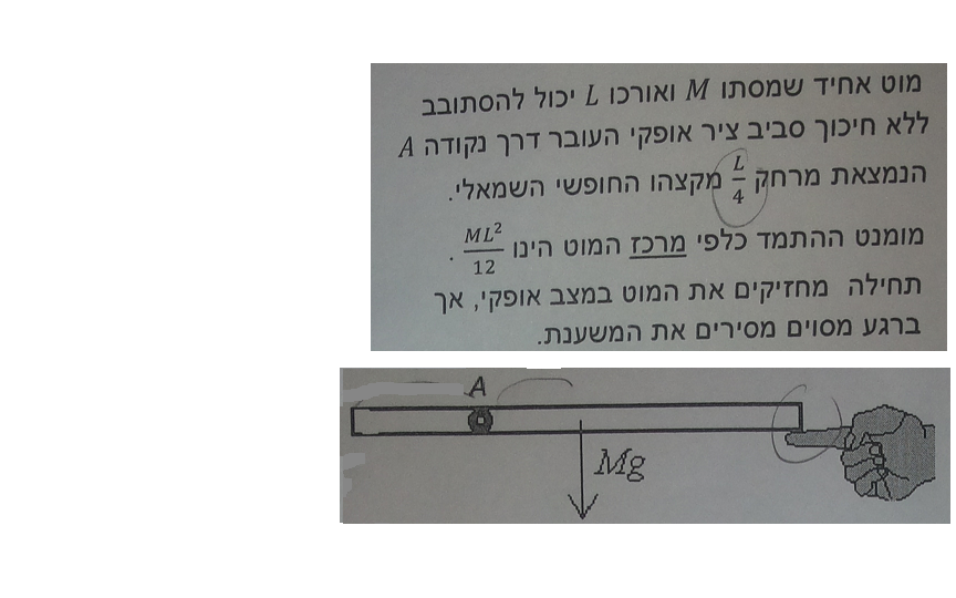 bfs פורסם ספטמבר 23, 2014 דיווח שיתוף פורסם ספטמבר 23, 2014 אני צריך עזרה בשאלה הבאה: ובאחד מן הסעיפים מבקשים: לחשב את המהירות של קצה המוט, כאשר הוא עובר דרך הנקודה הנמוכה ביותר. בחישוב של מומנט ההתמד ביחס לנקודה A יצא לי http://www.codecogs.com/gif.latex?%5Cfrac%7B7%7D%7B48%7D%20%5Ccdot%20M%5Ccdot%20L%5E%7B2%7D (ע"י שימוש במשפט שטיינר) ומכאן הגעתי לתשובה http://www.codecogs.com/gif.latex?%5Csqrt%7B%5Cfrac%7B3%7D%7B7%7D%5Ccdot%20g%5Ccdot%20L%7D עבור הסעיף הנ"ל. הדבר שאני לא בטוח לגביו, שבחישוב האנרגיה הפוטנצאלית של המוט ברגע העזיבה, לקחתי את הגובה h בתור http://www.codecogs.com/gif.latex?%5Cfrac%7BL%7D%7B2%7D (פשוט לקחתי בחשבון שהמרחק מנקודת העזיבה ועד למרכז המסה של המוט הוא http://www.codecogs.com/gif.latex?%5Cfrac%7BL%7D%7B2%7D , אבל אני לא בטוח בשיקול הנ"ל). אשמח להערות בנושא. ציטוט קישור לתוכן שיתוף באתרים אחרים More sharing options...