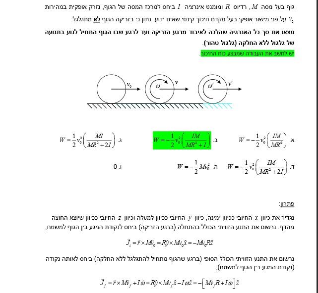 אבל אם בחרתי לחשב את התנ"ז לפי נקודת המגע אז אני לא במ"מ ולכן עפ"י שטיינר מומנט האינרציה בנקודת המגע- שזה הציר הנבחר, הוא לא I הנתון ( הנתון עבור מ"מ).
