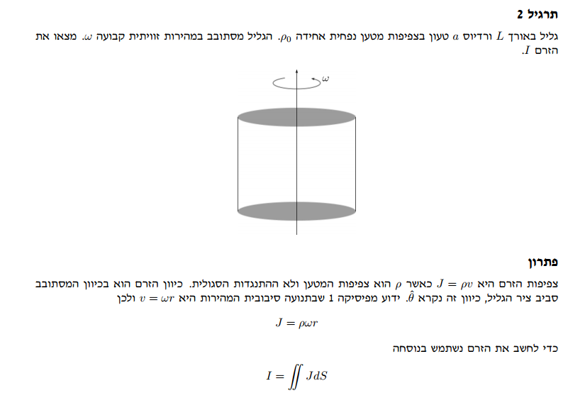 אודי פורסם פברואר 25, 2016 דיווח שיתוף פורסם פברואר 25, 2016 הזרם הוא השטף של צפיפות הזרם דרך שטח חתך של המוליך: http://www.codecogs.com/gif.latex?I=%5Ciint%5Cvec%7BJ%7D%5Ccdot%5Cvec%7Bds%7D בדרך כלל בוחרים שטח חתך ניצב לכיוון הזרם כדי שהמכפלה הסקלרית באינטגרל תתן תוצאה פשוטה (1). במקרה הזה הזרם הוא בכיוון המשיקי (תטא), ולכן שטח חתך ניצב לכיוון הזרם הוא מלבן במישור r-z, שצלע אנכית אחת שלו נמצאת ב-r=0 והשנייה ב-r=R. ציטוט קישור לתוכן שיתוף באתרים אחרים More sharing options...