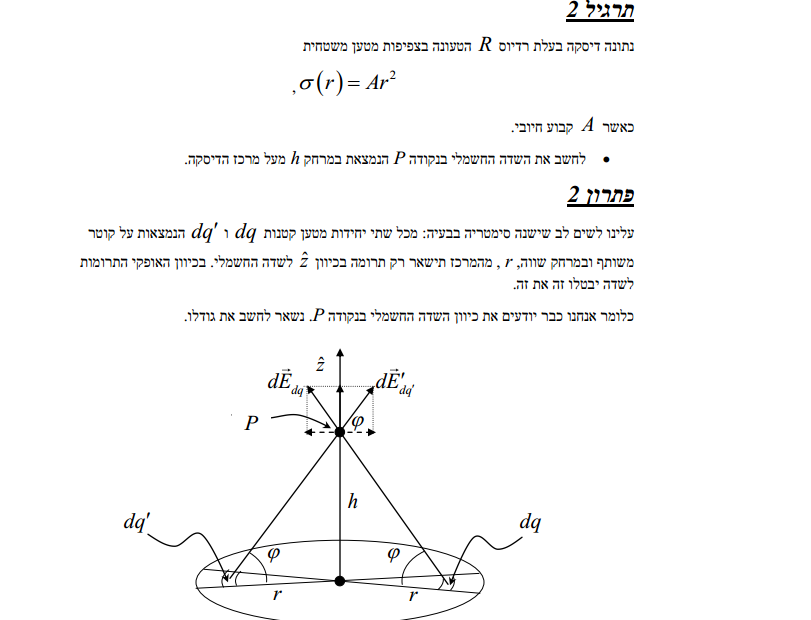 אודי פורסם מרץ 10, 2014 דיווח שיתוף פורסם מרץ 10, 2014 זה רק החלק הראשון של הפתרון. בכוונה?בכל מקרה, הכוונה של החלק הזה היא שבגלל הסימטריה של הדיסקה השדה הכולל בנקודה שנמצאת מעל מרכז הדיסקה חייב להיות בכיוון הניצב לדיסקה.הרכיבים בכיוון המקביל לדיסקה פשוט מבטלים זה את זה. ציטוט קישור לתוכן שיתוף באתרים אחרים More sharing options...